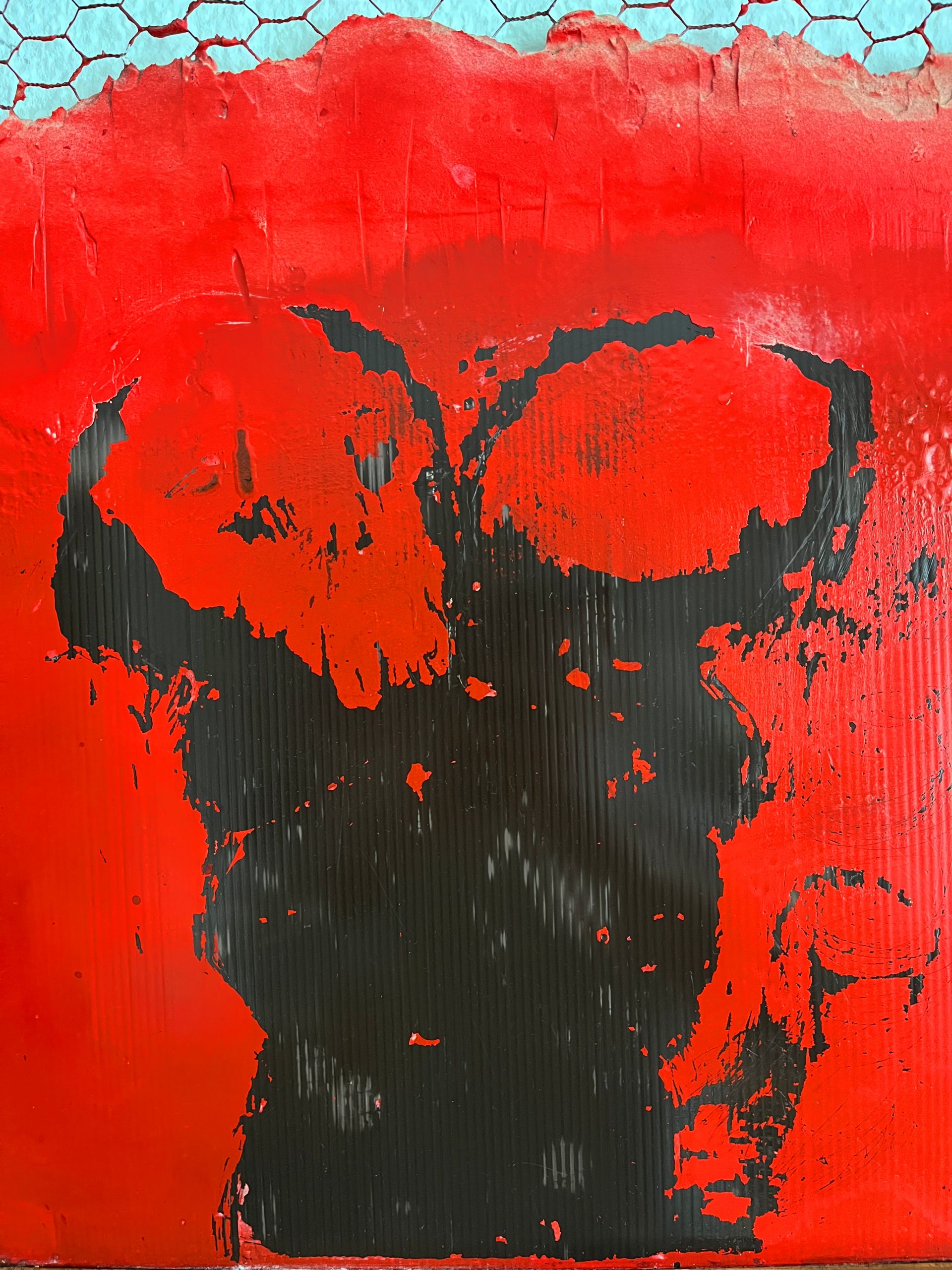 Technique: Mixed Media (wood, plastic, modeling compound, acrylic paint, epoxy resin, metal)