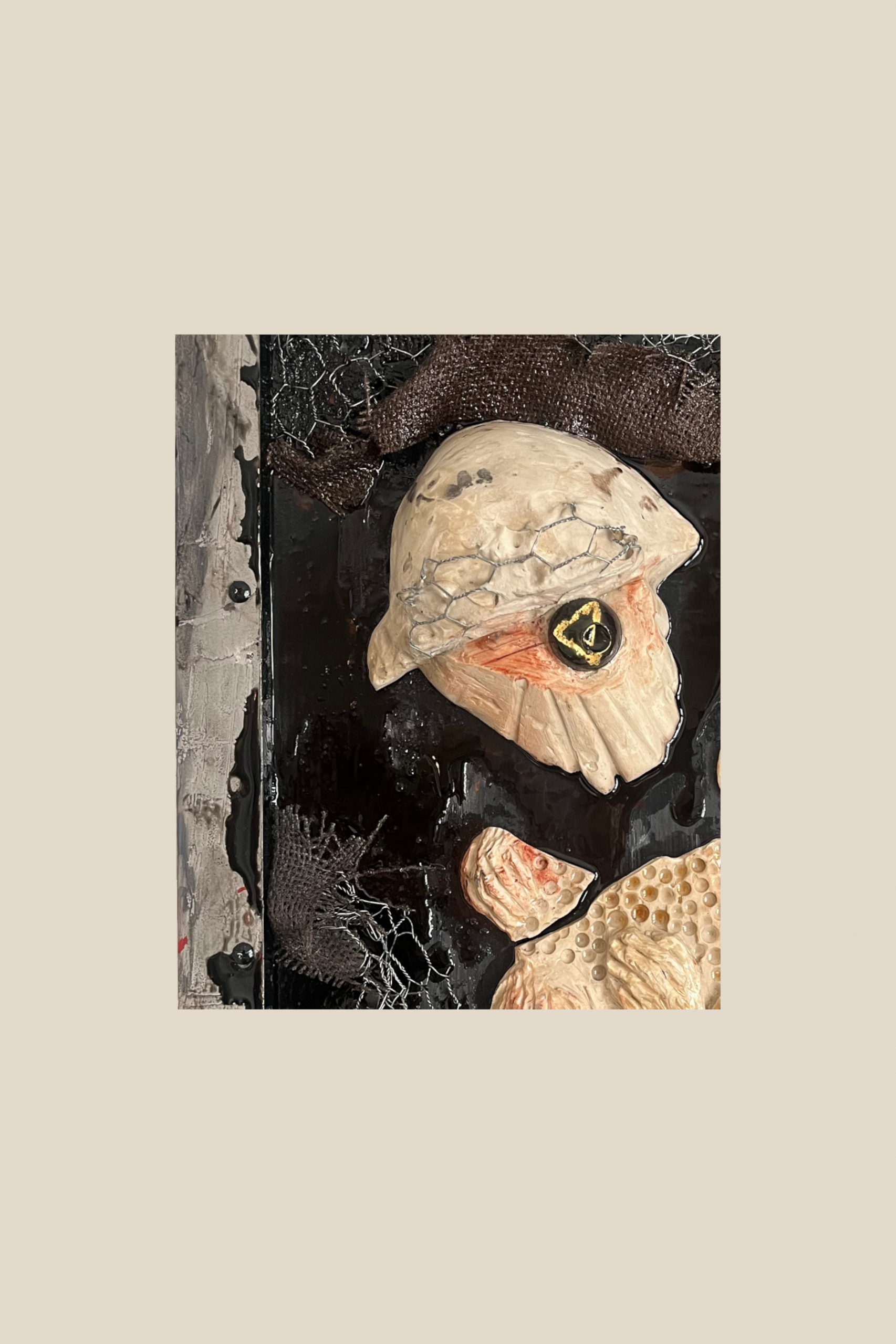 Technique: Mixed Media (modeling compound, plastic, acrylic paint, epoxy resin, metal)