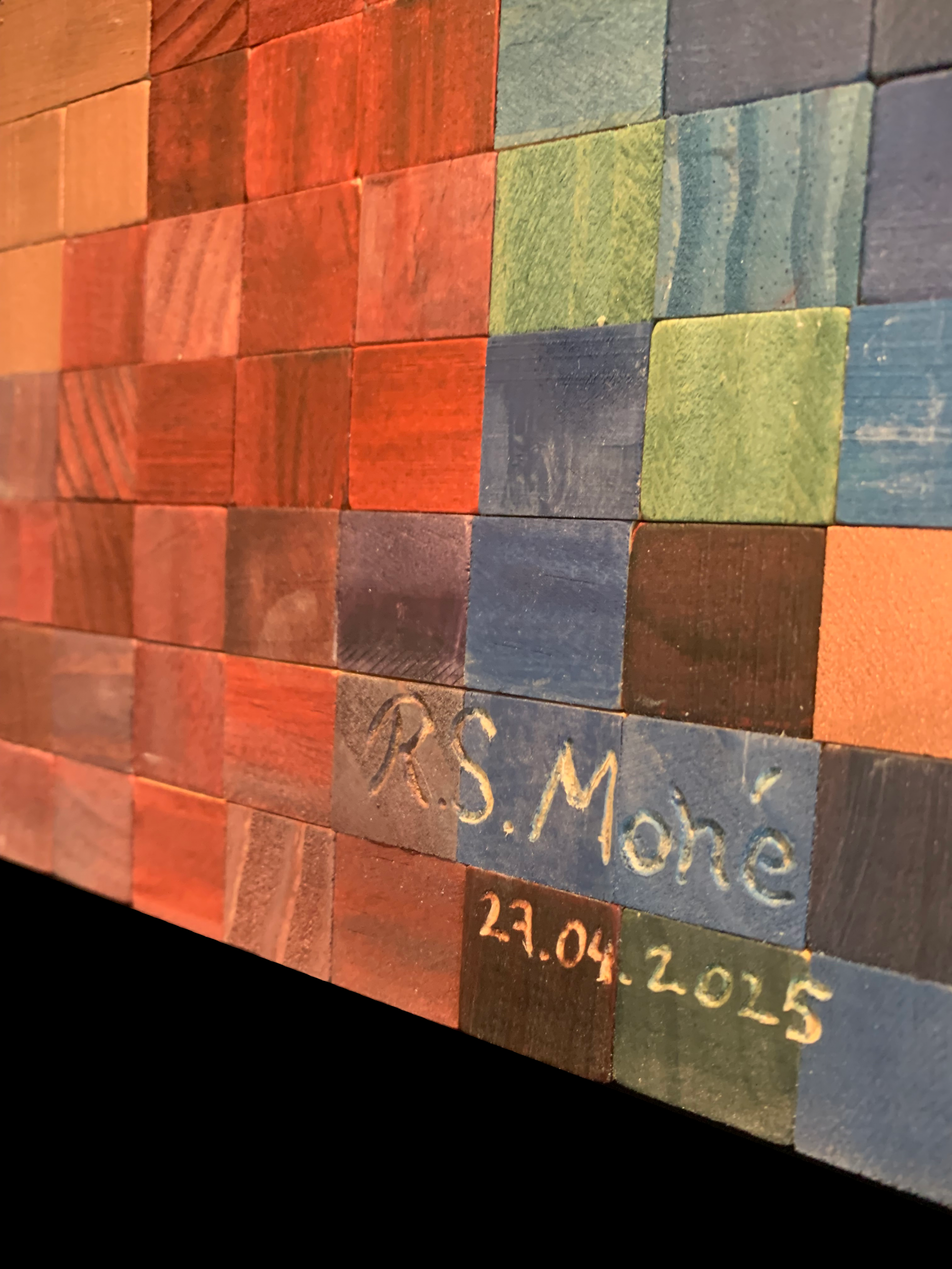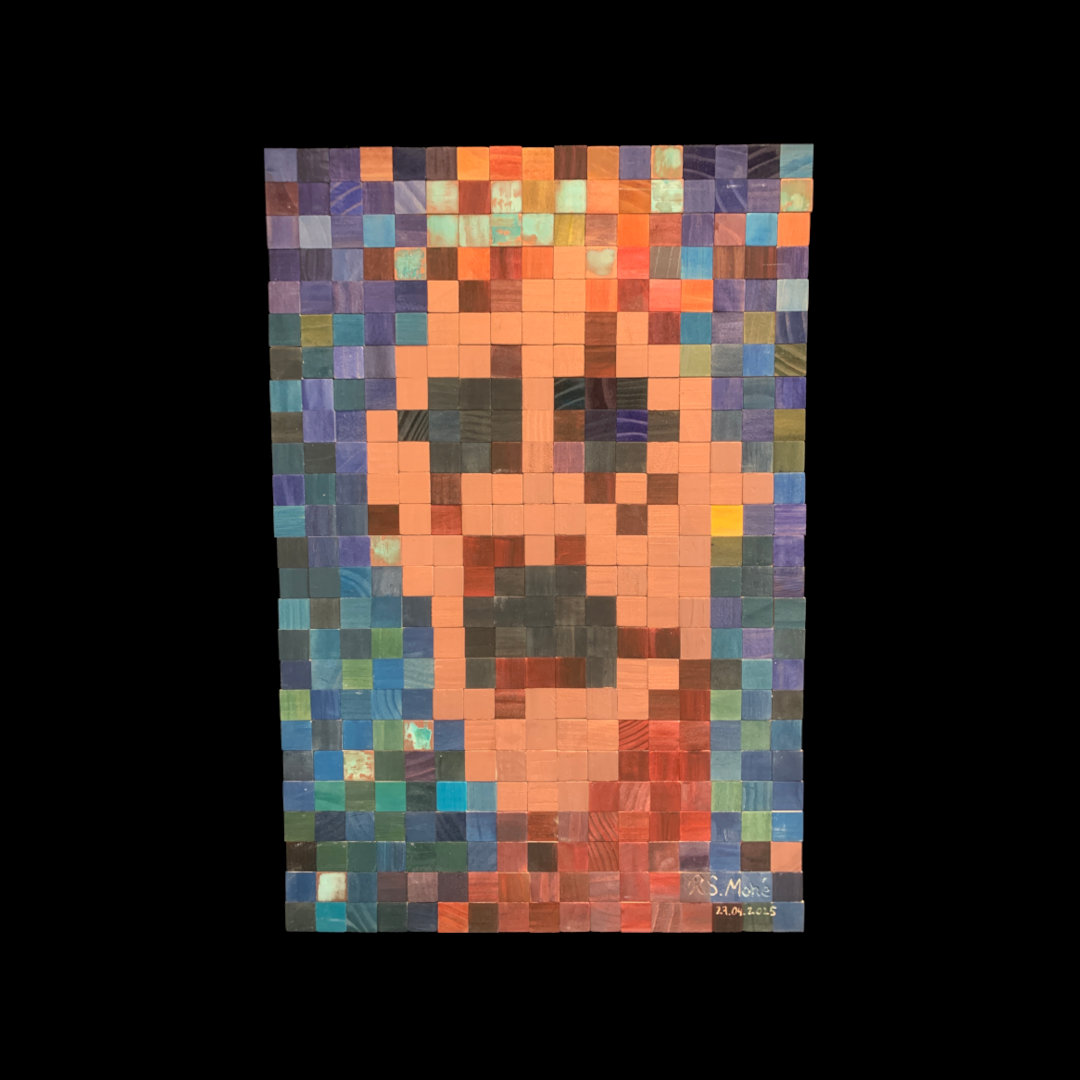 Title: Undefined 425 Year: 2025 Dimensions: 50 x 34 cm Materials: Acrylic on wooden cubes, copper paint, patina Artist: Robin Steven Moné Undefined 425 explores the blurring of identity in the age of dissolution. A fragment of a face is created from 425 individually colored wooden cubes – recognizable and yet distant. The viewer is…